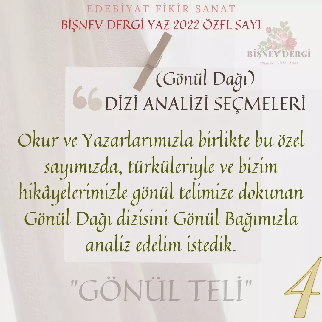 Okur ve yazarlarımızla birlikte bu özel sayımızda, türküleriyle ve bizim hikâyelerimizle gönül telimize dokunan Gönül Dağı dizisini gönül bağımızla analiz edelim istedik.